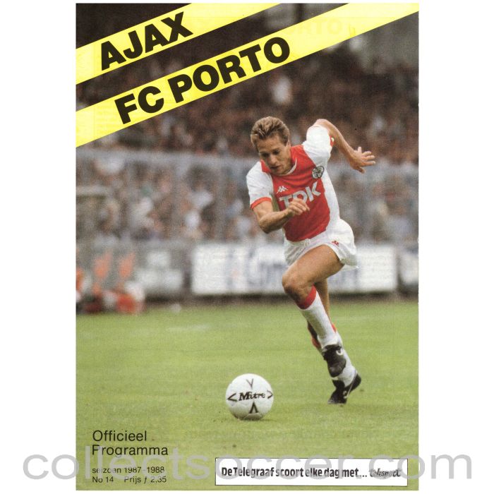 Official programme for the first leg of the Super Cup Final in Holland, played between Ajax and Porto with Porto emerging as 1-0 winners. The Portuguese team eventually won both legs 1-0. The programme is in mint condition.