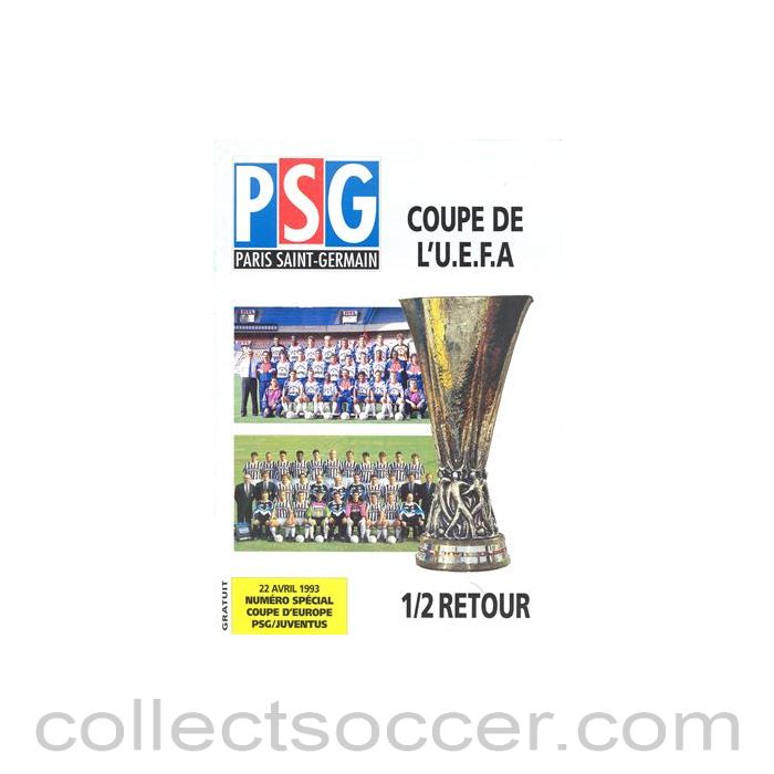 1993 Paris Saint-Germain v Juventus official programme 22/04/1993 UEFA Cup Semi-Final
