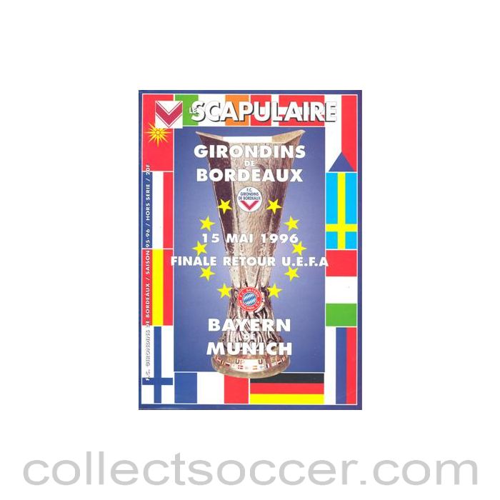 1996 UEFA Cup Final Programme Girondins Bordeaux v Bayern Munich official programme 15/05/1996, 32 pages, in mint condition.