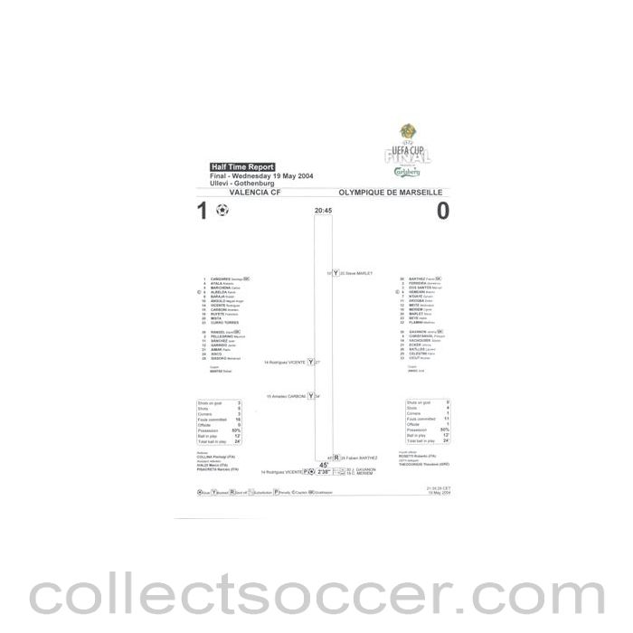 2004 UEFA Cup Final Valencia v Olympique de Marseille Half Time Report 19/05/2004