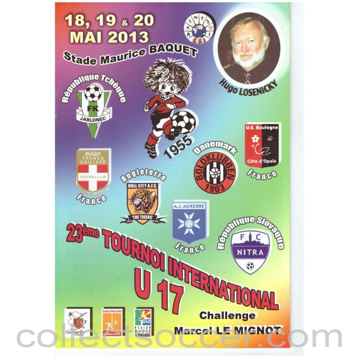 Official Programme for the 2013 Marcel Le Mignot Youth Tournament for Under 17s at the Stade Maurice Baquet, Teams included Hull City, Auxerre, Boulogne and Boldklubben