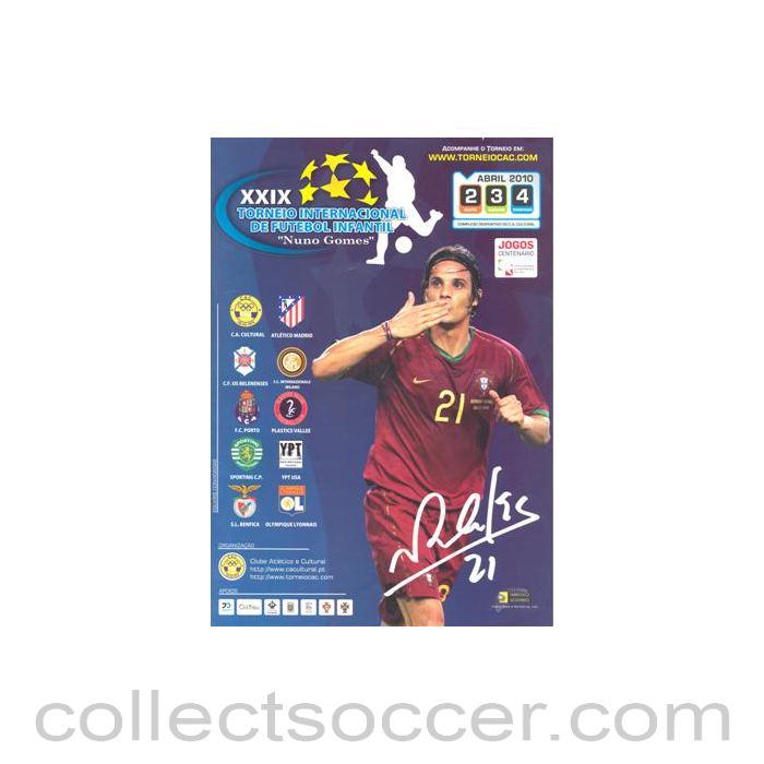 29th International Youth Tournament In Portugal April 2010, 48 pages, in mint condition. The teams are: Cultural, Atletico Madrid, Belenenses, Inter Milan, Porto, Plastics Vallee, Sporting, YPT USA, Benfica and Olympique Lyonnais.