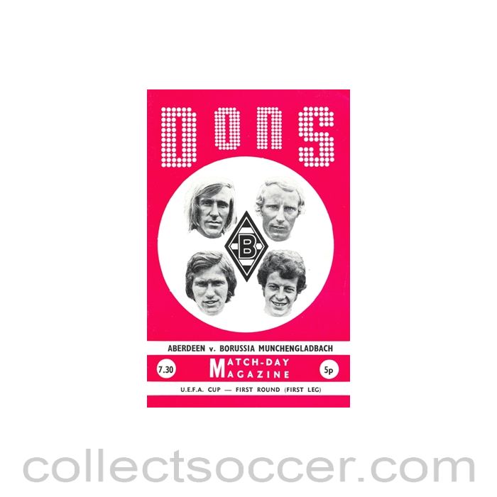 Aberdeen v Borussia Munchengladbach official programme Season 1972-73, in very good condition, score and team changes in pen on the back.
