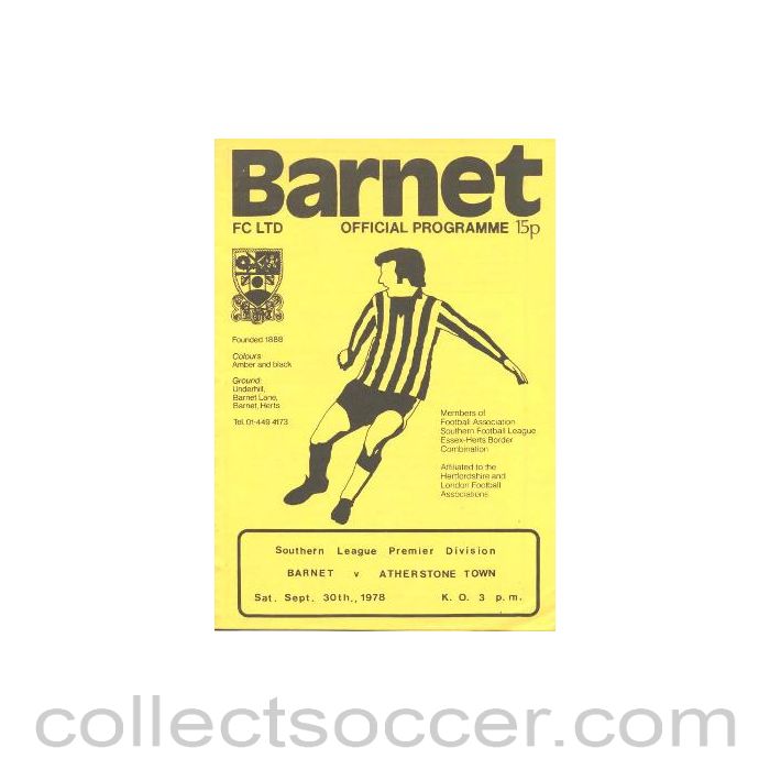 Barnet v Atherstone Town official programme 30/09/1978, 12 pages, in very good condition.
