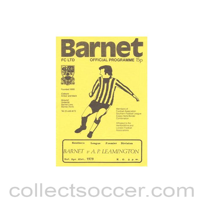 Barnet v Leamington official programme 21/04/1979 Southern League premier Division, 12 pages, in mint condition.