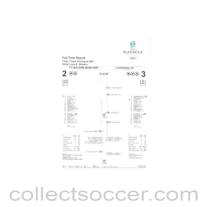 Bayern Munich v Liverpool full time report 24/08/2001 Super Cup, in very good condition.