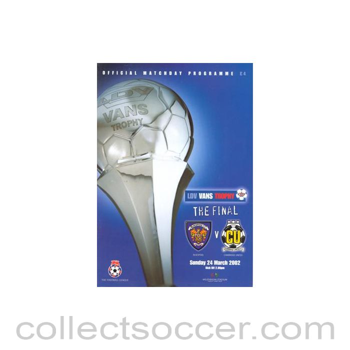 2002 - Blackpool v Cambridge United official programme 24/03/2002 LDV Vans Trophy Final