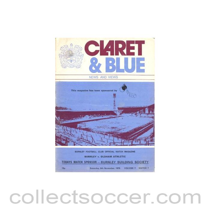 Burnley v Oldham Athletic official programme 06/11/1976 Football League, 20 pages, in good condithion, some small stains on the back.