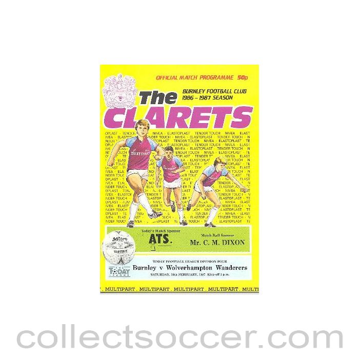 1987 - Burnley v Wolverhampton Wanderers official programme 14/02/1987 Football League