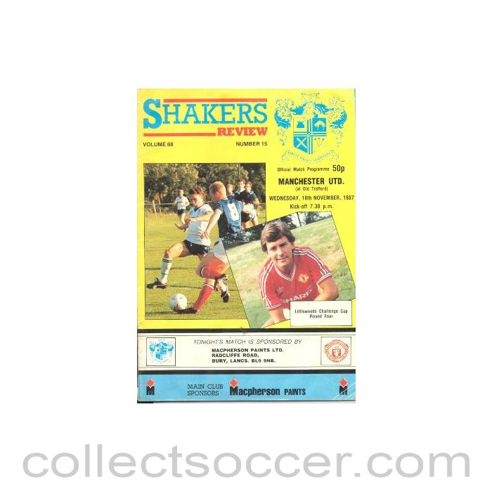 Bury v Manchester United official programme 18/11/1987 in very good condition.
