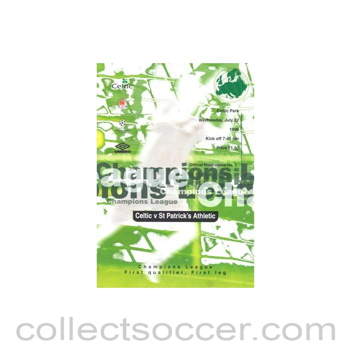 Celtic v St. Patrick official programme 22/07/1998 Champions League, 32 pages, in mint condition.