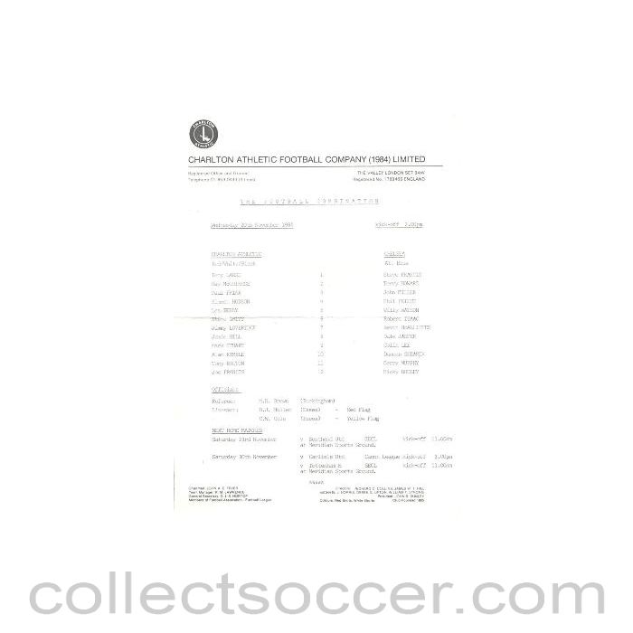 Charlton Athletic vChelsea official programme 20/11/1985 in mint condition.