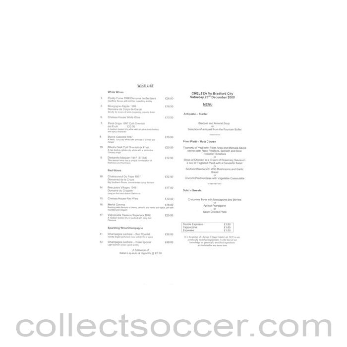 2000 - Chelsea v Bradford City menu 23/12/2000