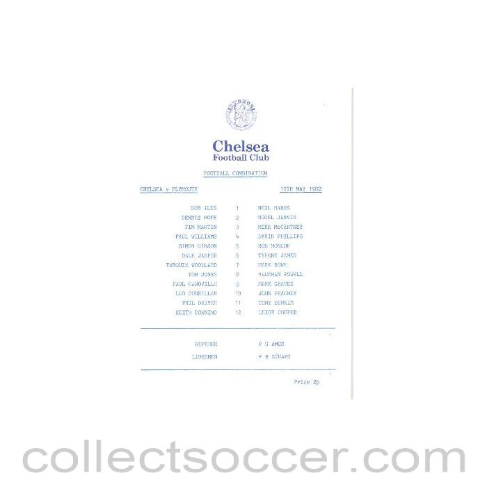 1982 - Chelsea v Plymouth Argyle official programme 10/05/1982 Reserves