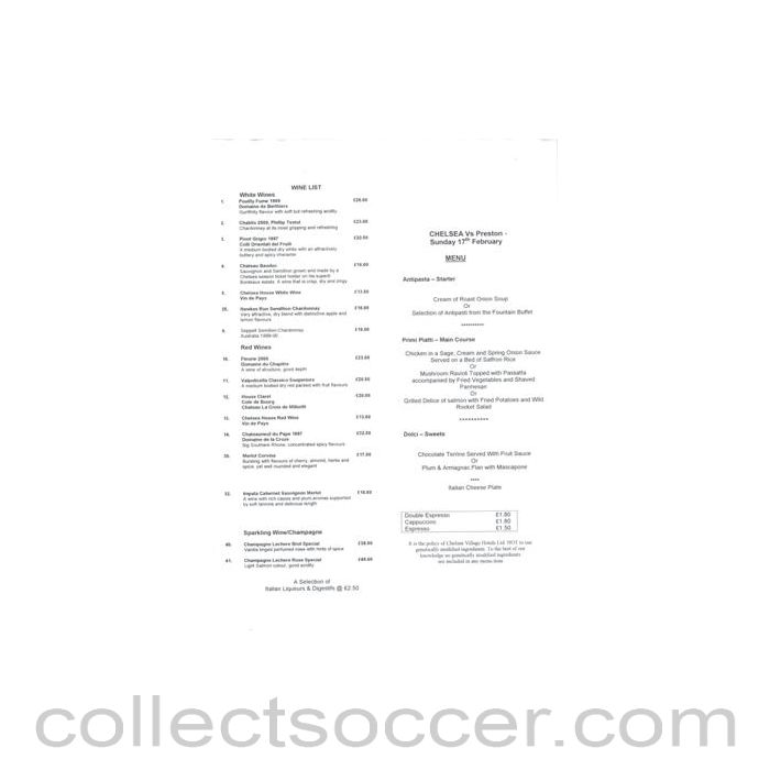 2002 - Chelsea v Preston North End menu 17/02/2002