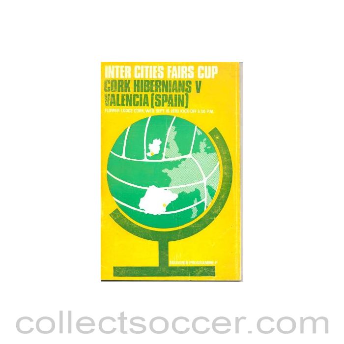 Cork Hibernians v Valencia Inter Cities Fairs Cup official programme 16/09/1970, in very good condition.