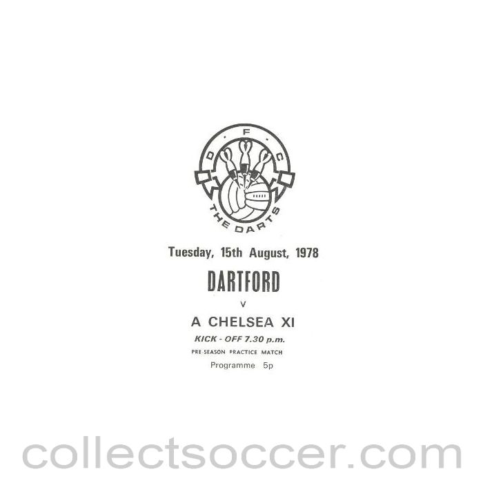 1978 - Dartford vChelsea official programme 15/08/1978 with a handwritten postcard