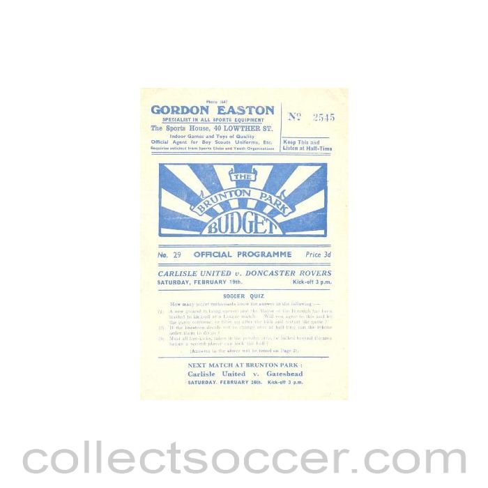 Doncaster Rovers v Carlisle official programme of an unknown season, in very good condition.