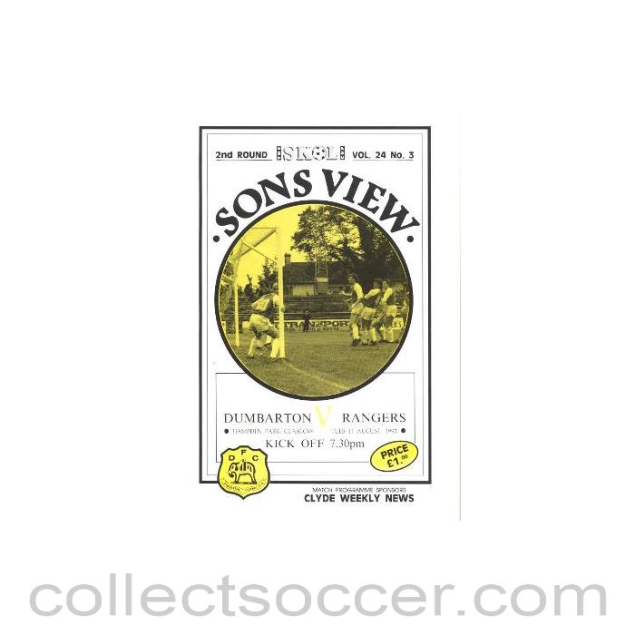 1992 - Dumbarton v Glasgow Rangers official programme 11/08/1992 Skol Cup