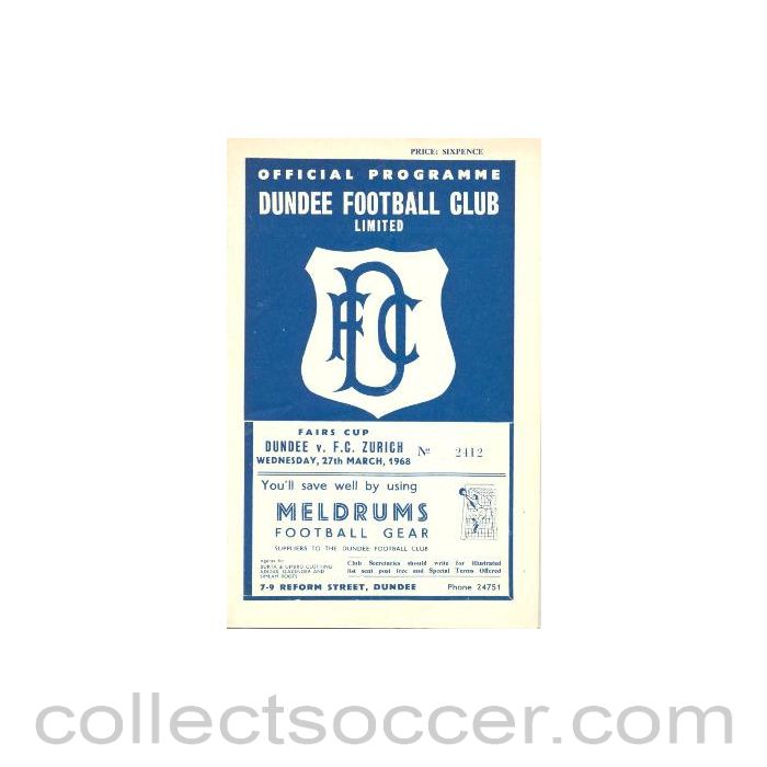 Dundee United v Zurich official programme 27/03/1968 Inter Cities Fairs Cup, 16 pages, in very good condition.