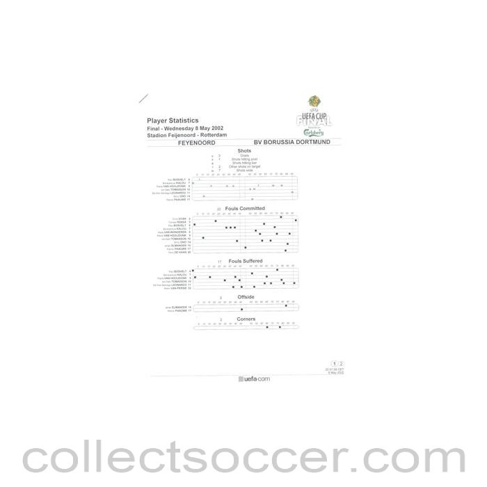 2002 - Feyenoord v Borussia Dortmund Player Statistics 08/05/2002 UEFA Cup Final