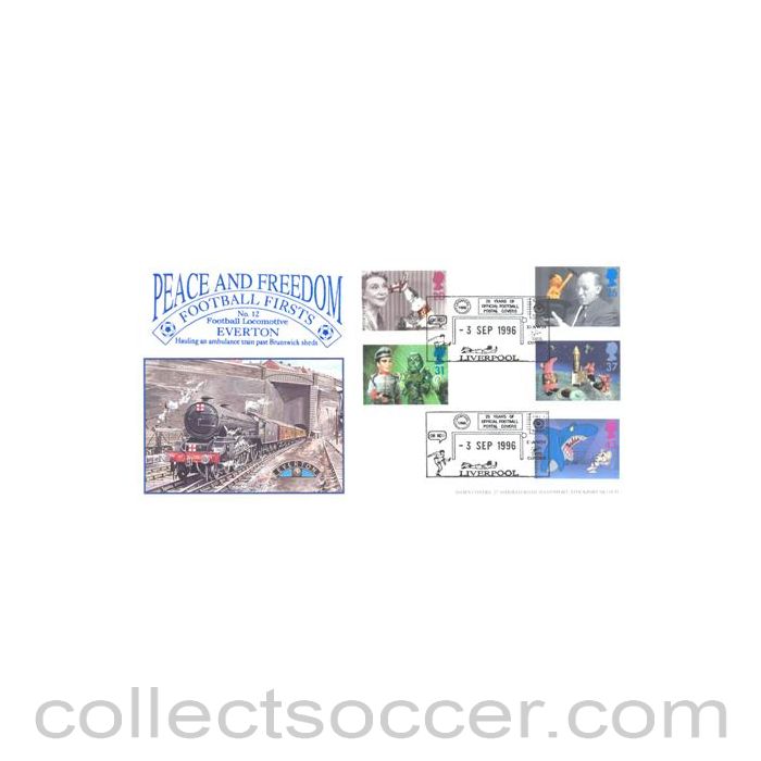 1996 - Football Locomotive Everton hauling an ambulance train past Brunswick sheds First Day Cover of 03/09/1996