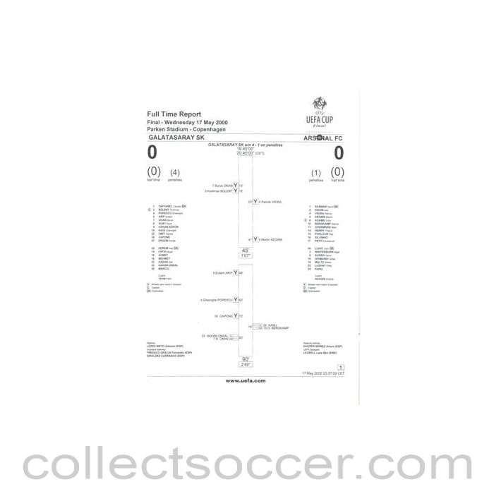2000 - Galatasaray v Arsenal Full Time Report 17/05/2000 UEFA Cup