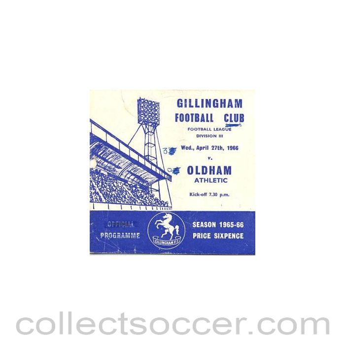 Gillingham v Oldham official programme 27/04/1966, in good condition.