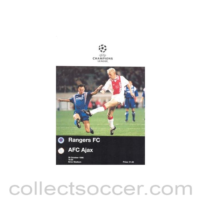 1996 - Glasgow Rangers v Ajax official programme 30/10/1996 Champions League
