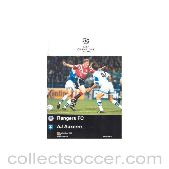 1996 - Glasgow Rangers v Auxerre official programme 25/09/1996 Champions League