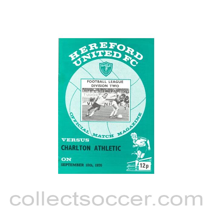 1976 - Hereford United v Charlton Athletic official programme 18/09/1976 Football League