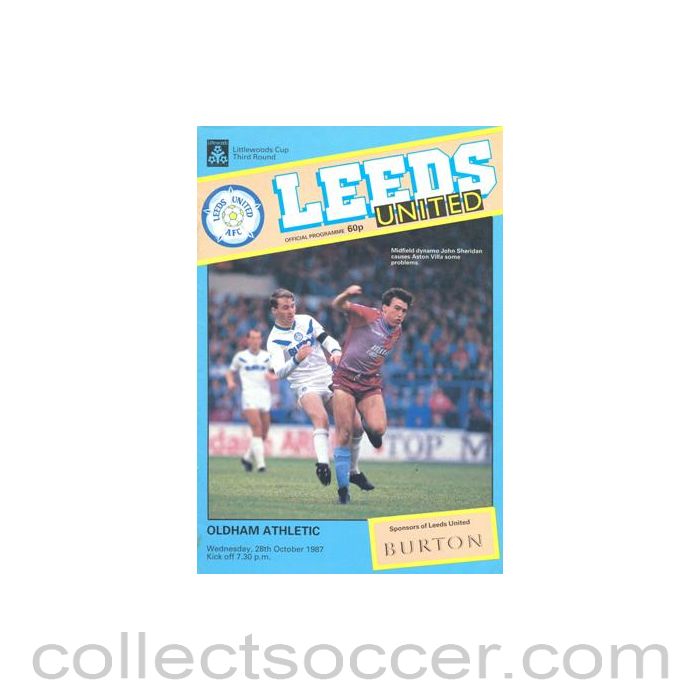 1987 - Leeds United v Oldham Athletic official programme 28/10/1987 Littlewoods Cup