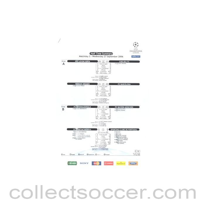 Levski Sofia Bulgaria v Chelsea Half Time Summary 27/09/2006 Champions League, two pages, in mint condition. The official programme, teamsheet, menu, flag, a welcome pack in a wallet and some more are also available.