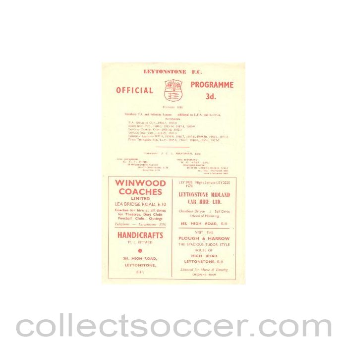 Leytonstone v Ilford official programme 29/03/1958, in very good condition.
