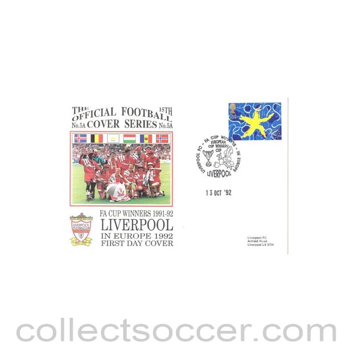 Liverpool,-,FA,Cup,Winners,in,Europe,First,Day,Cover,13/10/1992,
