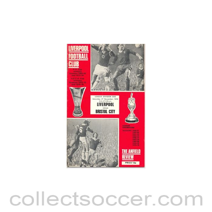 1976 - Liverpool v Bristol City official programme 27/11/1976