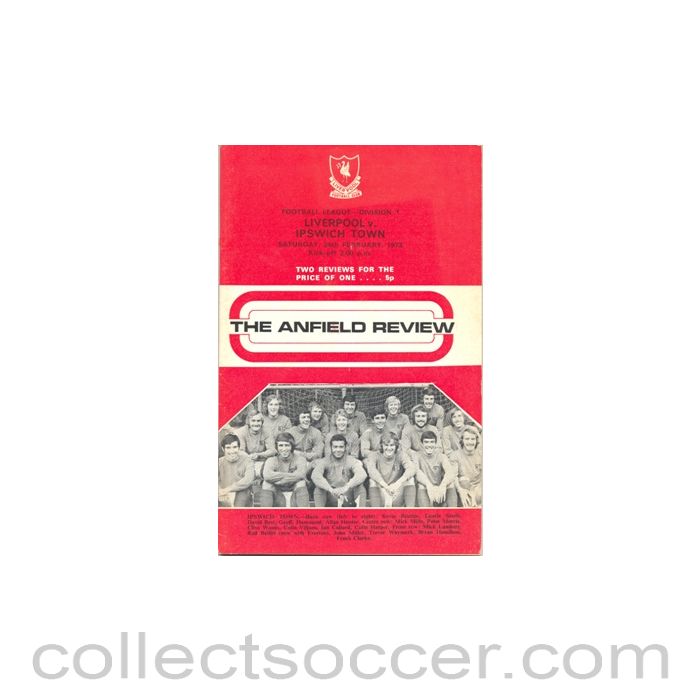 1973 - Liverpool v Ipswich Town official programme 24/02/1973