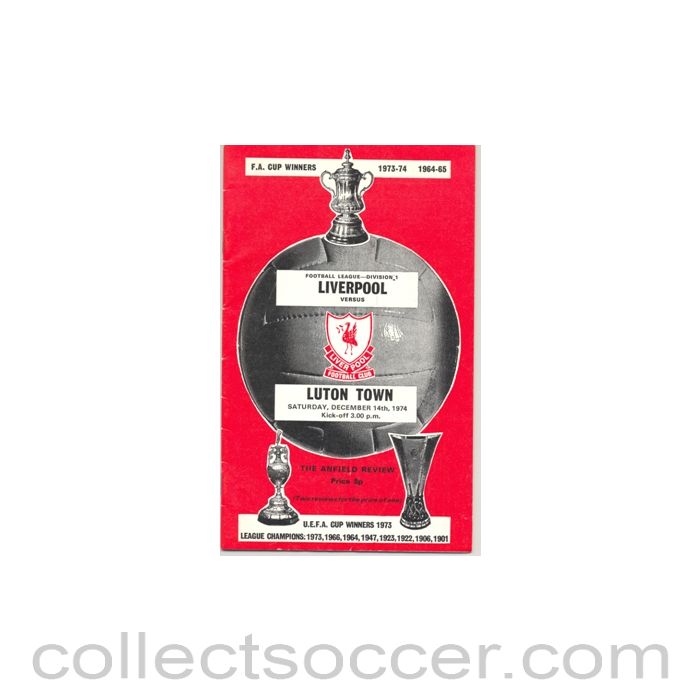 1974 - Liverpool v Luton Town official programme 14/12/1974