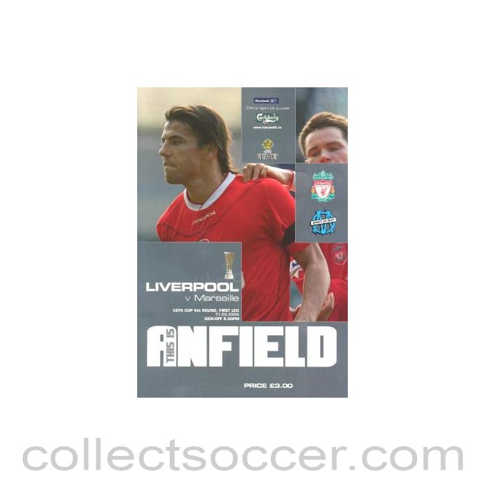Liverpool v Marseille official programme 11/03/2004, 60 pages, in mint condition.
