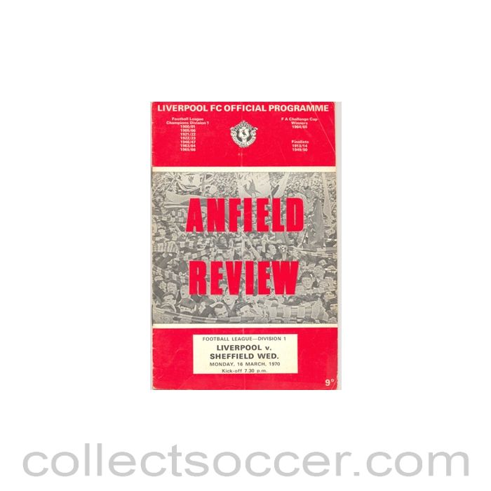 1970 - Liverpool v Sheffield Wednesday official programme 16/03/1970
