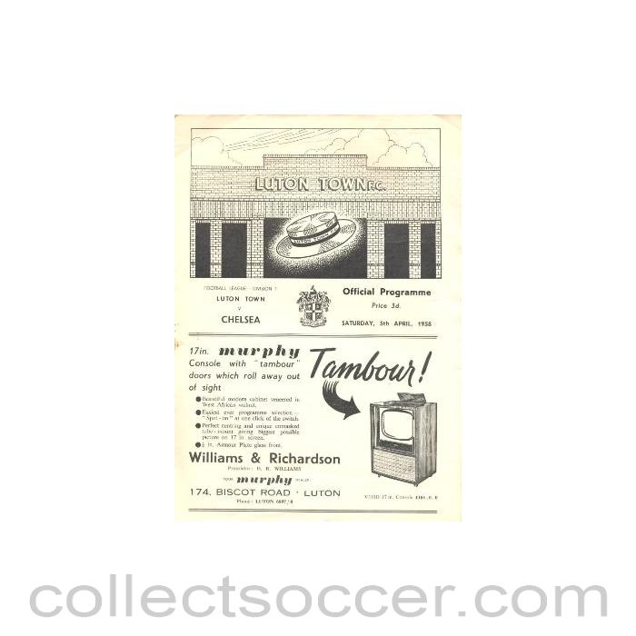 Luton Town vChelsea official programme 05/04/1958 in very good condition, just a staple is missing.