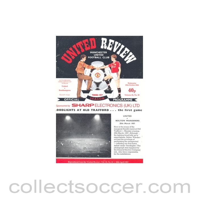 Manchester United v Southampton official programme 29/10/1986 Football League, in very good condition.
