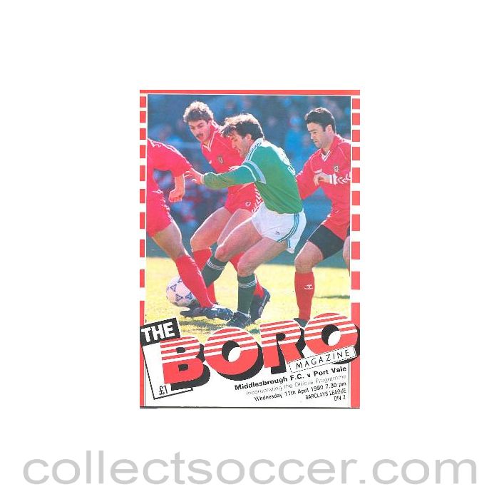 Middlesbrough v Port Vale official programme 11/04/1990 Barclays League, 32 pages, in mint condition.