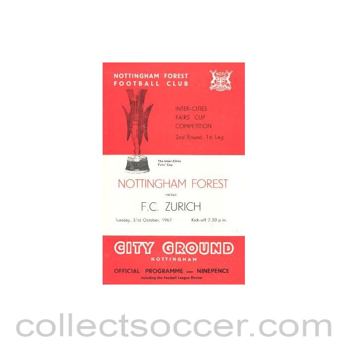 Nottingham Forest v Zurich official programme 31/10/1967 Inter Cities Fairs Cup, in very good condition, 16 pages.