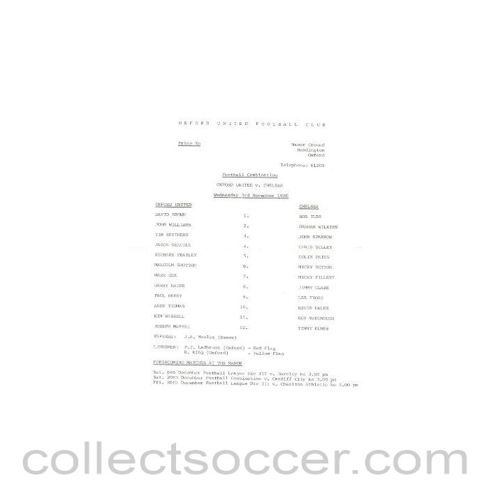 1980 - Oxford United vChelsea official programme 03/11/1980