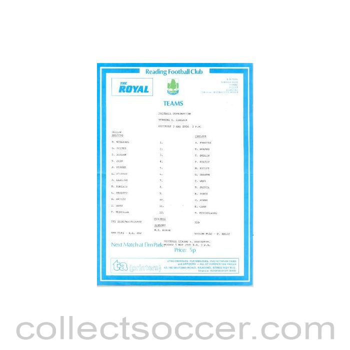 Reading Reserves vChelsea Reserves official programme 03/05/1986 in mint condition, one sheet programme.
