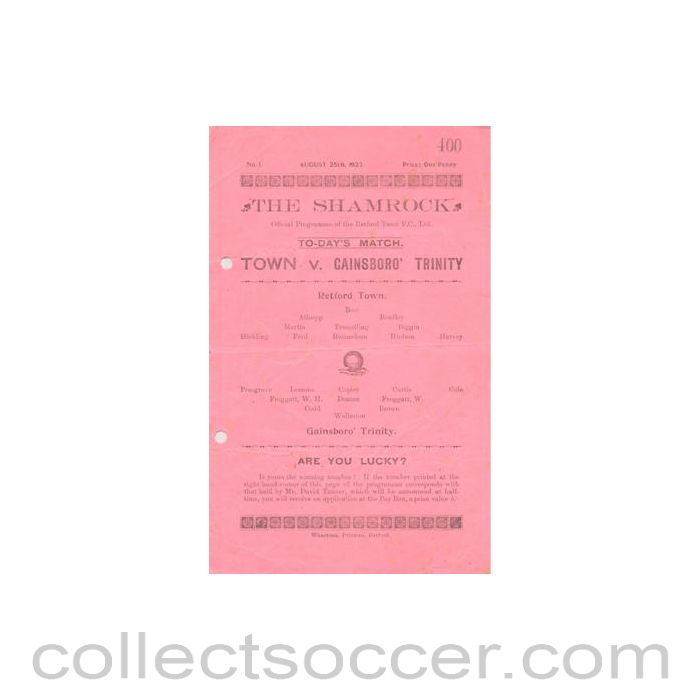Retford Town v Gainsboro Trinity official programme 25/08/1923, 4 pages, in very good condition, hole-punched.
