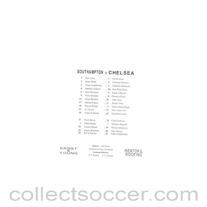 Southampton v Chelsea official teamsheet, unknown season, in mint condition.