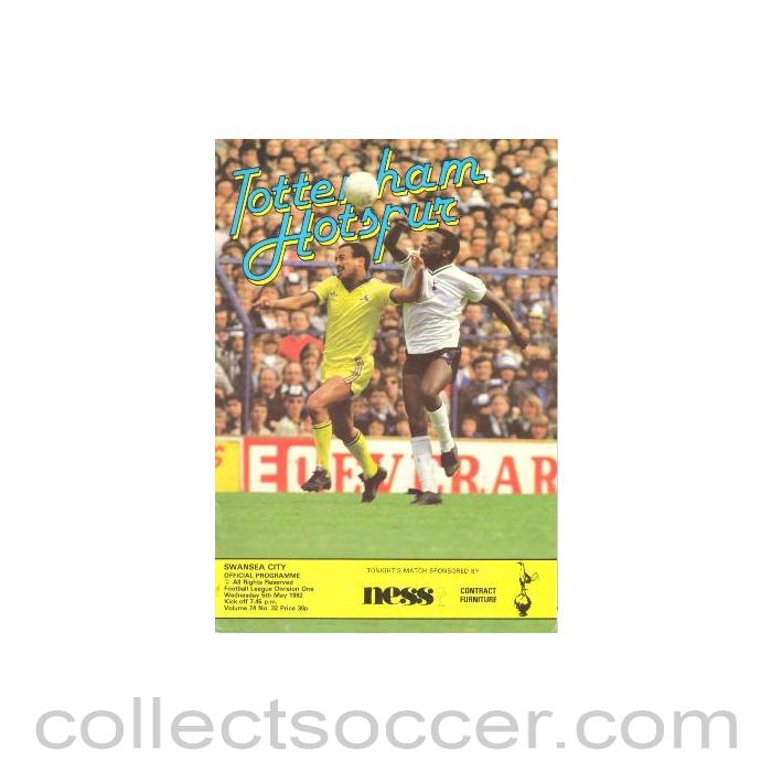 Tottenham Hotspur v Swansea City official programme 05/05/1982 Football League, about 30-40 pages, in very good condition.