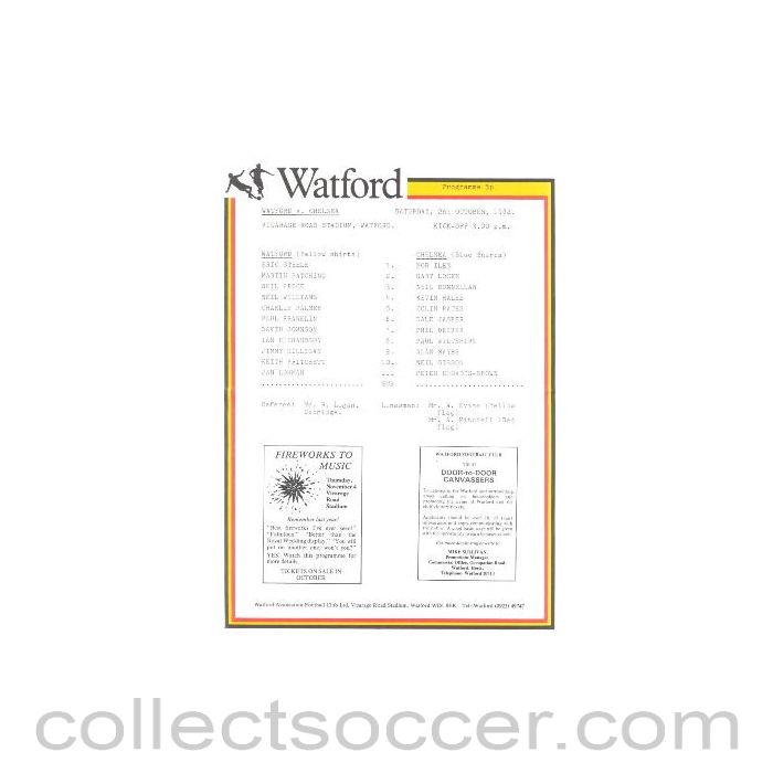 Watford v Chelsea official teamsheet 02/10/1982 in mint condition.